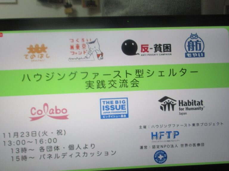11月23日(火)「ハウジングファースト型シェルター実践交流会」に参加