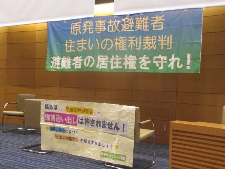 ❶本年3月11日、国家公務員宿舎から追われようとしている11名の原発事故避難者が、福島県の違法行為に […] -