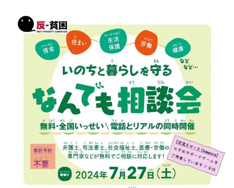 7月27日(土)いのちと暮らしを守るなんでも相談会開催!
