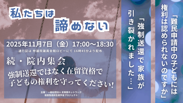 11月7日 強制送還ではなく在留資格で子どもの権利を守ってください