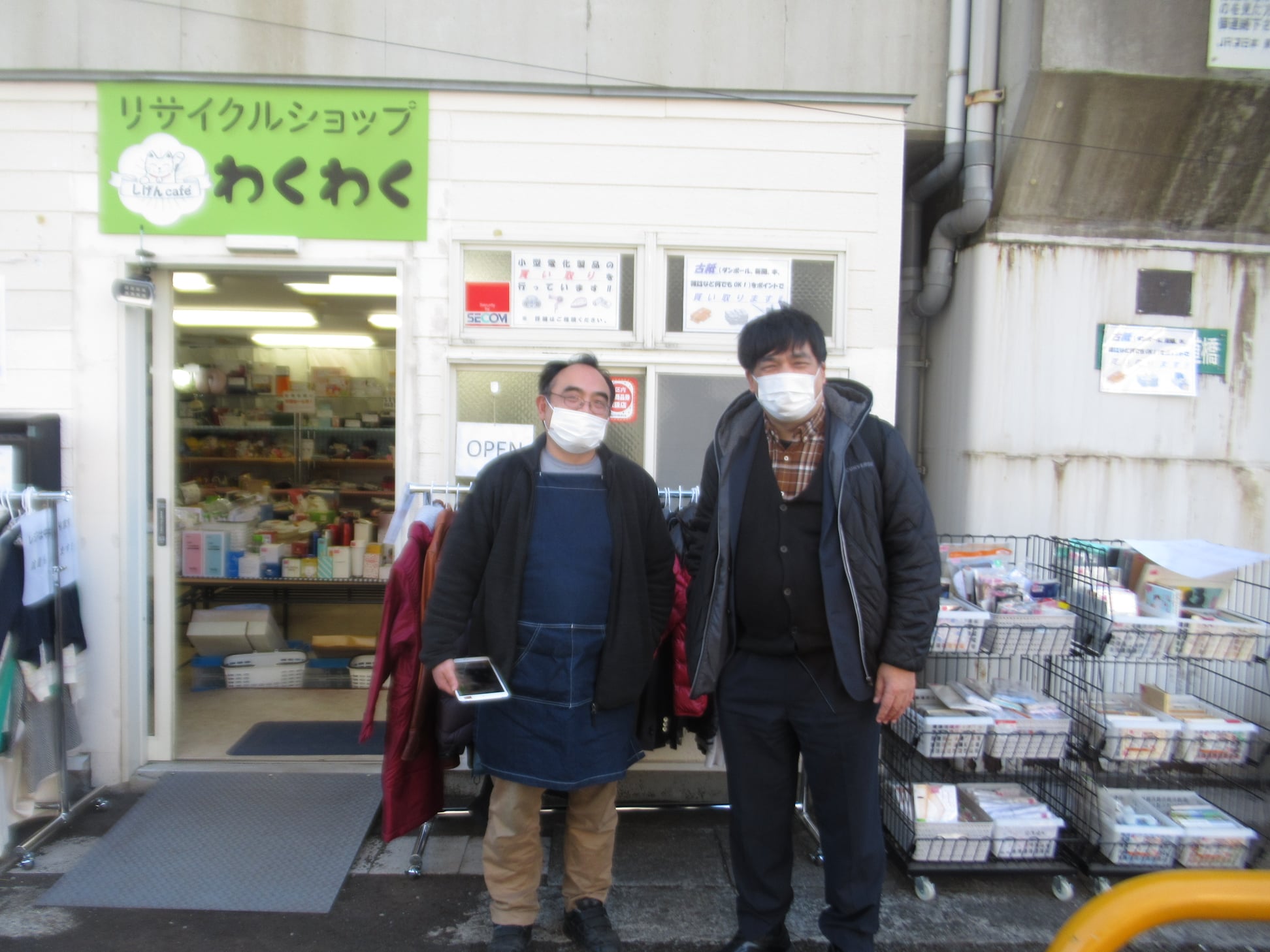 ❷午後の事務所での相談者訪問に備えて以前から行きたかった北区浮間にある「しげんCafeわくわく」に向かう。企業組合あうんの若畑さんがスタッフで迎えてくれました。運営するのはNPO法人わくわくかん、浮間4丁目交差点の高架下にあり、半分はカフェ、もう半分はリサイクルショップになっています。しげんカフェカフェとは、資源回収・買い取りを組み合わせ、地域交流の拠点を形成するとともに、働く場を創り出していこうという取り組み、いらなくなったモノをリサイクルショップに持ってくることで、「しげんポイント」がもらえます。「しげんポイント」を使って、カフェで珈琲を飲んだり食事ができる。リサイクルショップでの買い物もできる。就労困難者を積極的に雇用する社会的企業「ソーシャルファーム」として、東京都の条例に基づく予備認証を受けた。しげんカフェは愛知県でわっぱの会(共同連)などが取り組み始めた非営利のフランチャイズで、カフェと資源回収・買取りを組み合わせ、地域交流の拠点を形成するとともに、働く場を創り出していこうという取り組み、 8人いるスタッフのうち3人は精神障害のある人で、本人の希望などに応じてリサイクル品の仕分けや値付け、喫茶の仕事に取り組んでいます。企業組合あうんも認証されています。