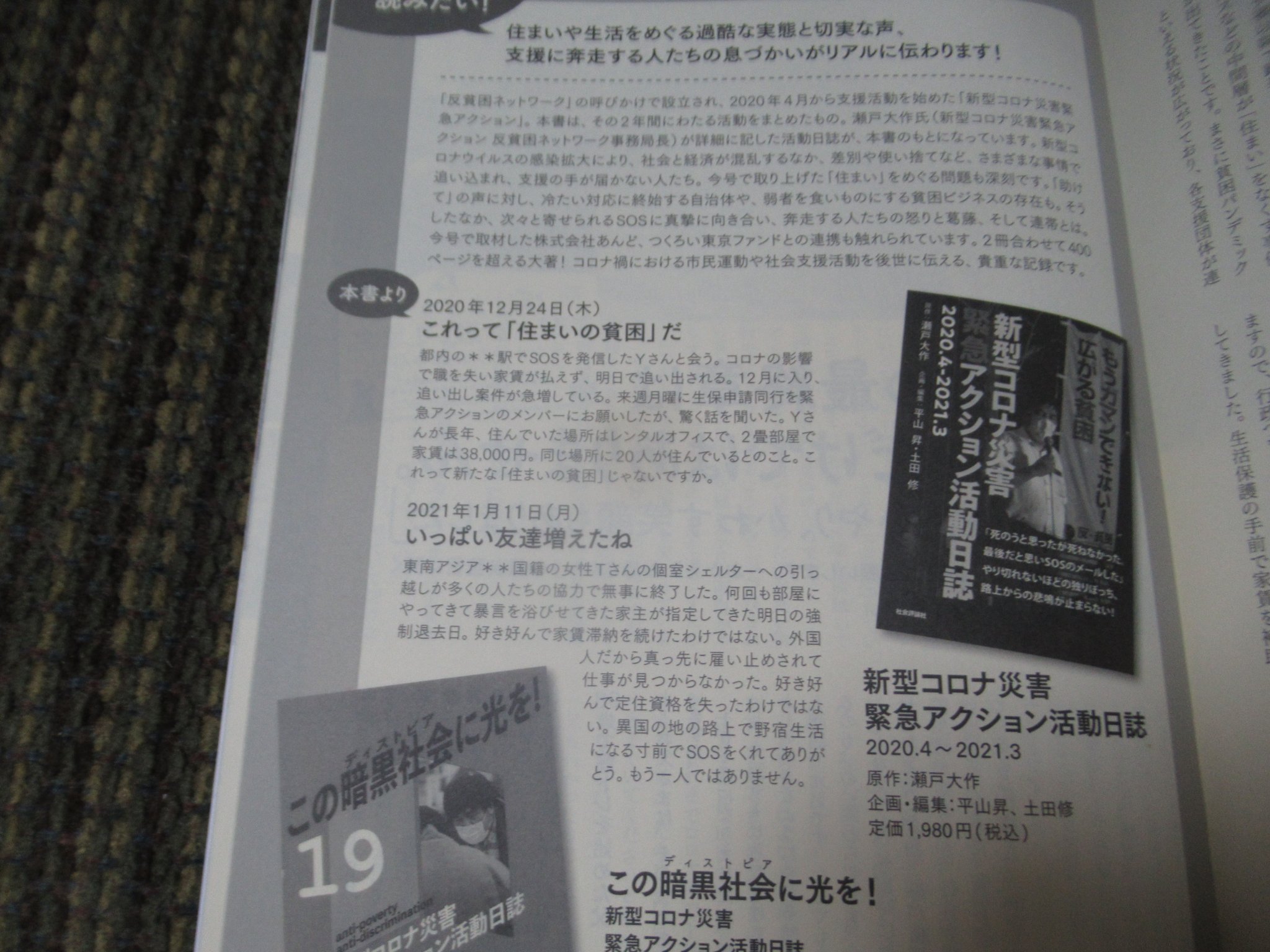 私の著作本もついでに紹介されています。反貧困ネットワークのシェルターも25室、どの支援団体もコロナ禍で居所を失う方が増大し、力量を超える居住支援事業を拡大してきました。民間の支援力に頼らずに、、今こそ公の出番です。
