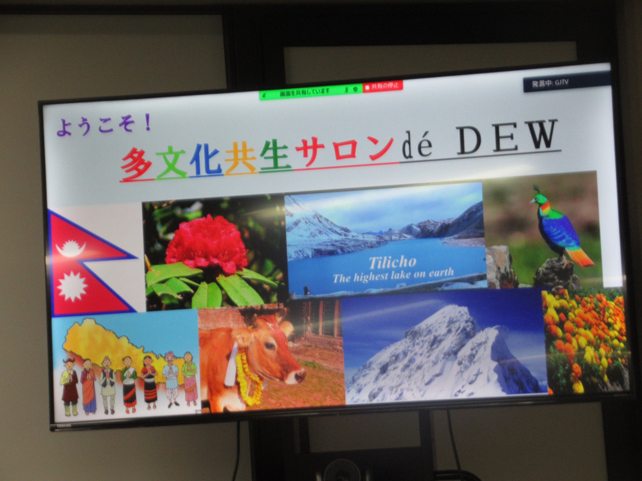 18時30分から「多文化共生サロン de DEWで第2回目のお国自慢」」が開催されています。仕掛け人はワーカーズコープの志波早苗さんです。ネパールから日本に来て5年、現在はワーカーズコープで総務経理担当として頑張っているラマさんのお話しです。日本の厳しい難民政策で苦しむ外国人の状況に怒りと哀しみばかりの日常ですが、ラマさんが紹介するネパールの文化や多くのコミュニティと観光地のお話、とても心地よい時間を過ごしました。来月はミヤンマーの料理とお話、反貧困ネットワークの理事会と開催日が重なっていて残念、料理だけは予約しておこう!